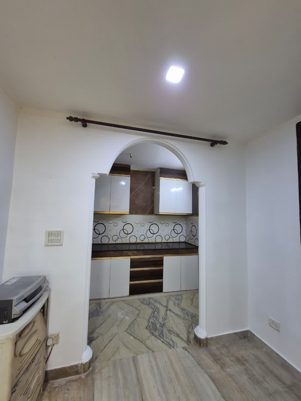 2 bhk with one AC. One inverter, 3 wardrobes, govt electricity meter, water motor, covered car parking, modular kitchen, nearby market, mall n hospital, walking metro station